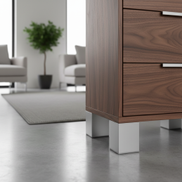 Modernes, stabiles und universelles Möbelfuß XANA in der Ausführung Natur-Aluminium ist die ideale Lösung für Kommoden, Schränke, TV-Tische, Küchen- oder Badmöbel, Nachttische sowie Büromöbel.