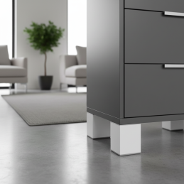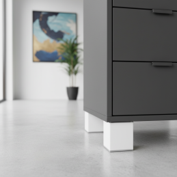 Einfaches, modernes und stabiles Möbelfuß XANA in elegantem Weiß ist die ideale Lösung für Kommoden, Schränke, TV-Tische, Badmöbel oder Nachttische.