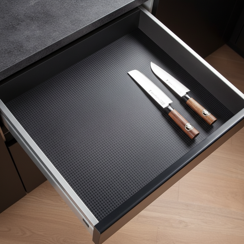 Möglichkeit zur Anpassung – die Matte kann einfach für andere Schubladentypen zugeschnitten werden