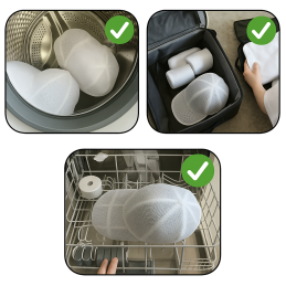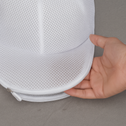 Mit diesem Helfer müssen Sie Mützen nicht mehr von Hand waschen. Legen Sie einfach die Cap in den Schutzkäfig, schließen Sie das Netz und geben Sie es in die Waschmaschine – sicher, schnell und ohne Verformung.