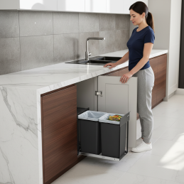 Das kompakte, eingebaute Abfallsystem GALANT 300 mm ist die ideale Lösung für kleinere Küchenschränke. Es ermöglicht eine effiziente Mülltrennung, spart Platz und hält die Küche sauber, organisiert und frei von unangenehmen Gerüchen.