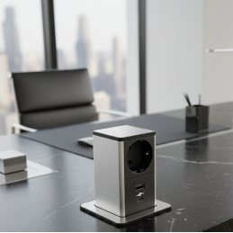 Die moderne ausziehbare Steckdose SQUARE UP in elegantem Edelstahl-Design ist eine praktische Lösung für Küchen, Büros oder Arbeitstische. Im geschlossenen Zustand wirkt sie minimalistisch und unauffällig – durch Drücken der oberen Fläche fährt sie nach oben und bietet sofortigen Zugang zu Strom- und USB-Anschlüssen.