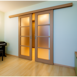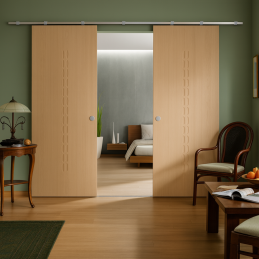 Wir bieten Ihnen das einfache, funktionelle und erschwingliche Schiebetürsystem SYNCHRONIK, mit dem Sie zwei Türen gleichzeitig öffnen können. Die Bewegung der einen Tür öffnet automatisch die andere und das Gleiche gilt beim Schließen - eine Lösung, die ideal ist, um Räume zu unterteilen oder größere Öffnungen zu nutzen.