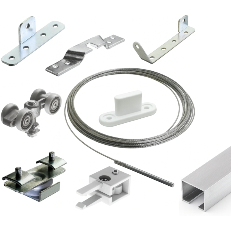 Alle für die Montage erforderlichen Zubehörteile sind im Bausatz enthalten, so dass Sie eine komplette Lösung für die Installation des Schiebesystems erhalten.