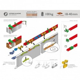Das gesamte System ist für Türen mit einem Maximalgewicht von 100 kg ausgelegt und eignet sich für Paneele mit einer Stärke von 18 - 40 mm.