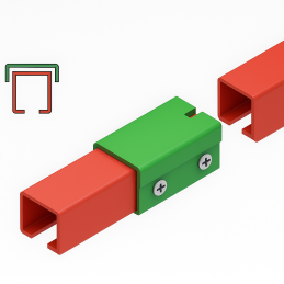 Die Montage ist sehr einfach - die Kupplung wird in beide Schienen eingeführt und fixiert sie fest in einer Linie.