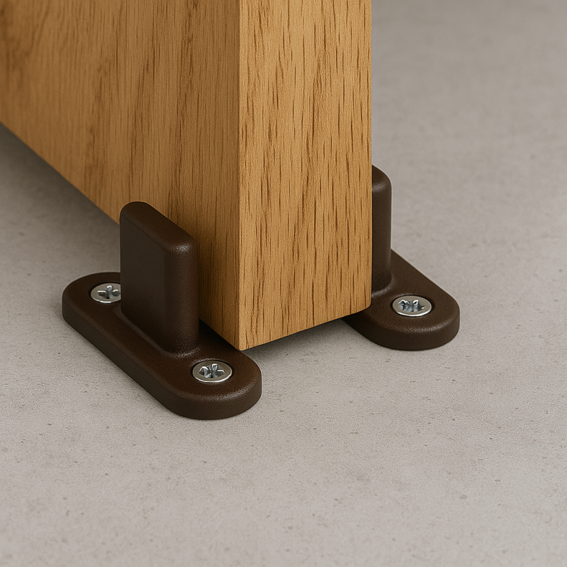 Die Kunststoffführung dient dazu, die Schiebetür stabil zu halten und verhindert, dass sie sich beim Bewegen durchbiegt. Dank ihres universellen Designs kann sie auf zwei Arten verwendet werden - entweder wird sie in die Nut an der Unterseite der Tür eingesetzt, oder es werden zwei Führungen verwendet , die einander gegenüber zwischen den Türen angebracht werden.