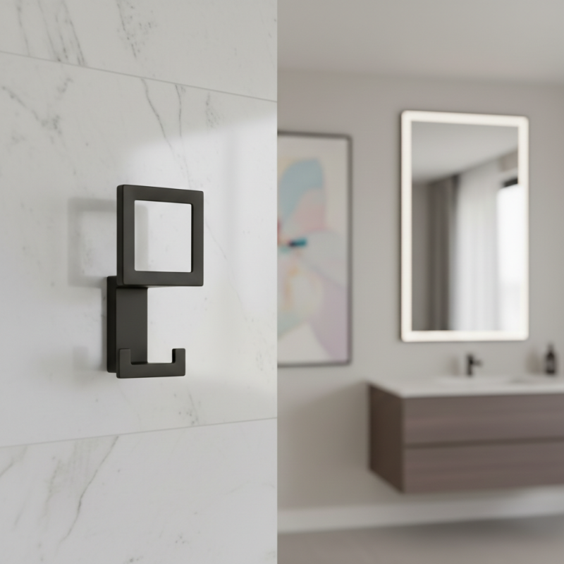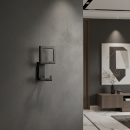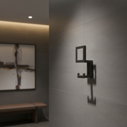 Eleganter und moderner Design-Kleiderhaken, der sich dank seiner klaren geometrischen Form sowohl für zeitgenössische als auch minimalistische Innenräume eignet. Er ist ideal zum Aufhängen von Mänteln, Jacken, Handtaschen, Taschen oder Accessoires im Flur, in der Garderobe, im Bad oder Schlafzimmer.