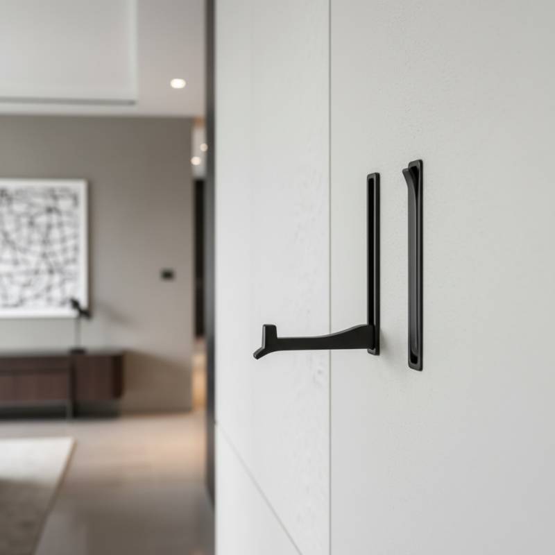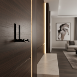 Der ausklappbare Haken VERNON Mini in schwarzer matter Ausführung ist die perfekte Lösung für moderne Innenräume, in denen Wert auf ein klares Design und Funktionalität gelegt wird. Dieser elegante Haken ist so konzipiert, dass er nach dem Einklappen vollständig in der Fläche verborgen ist – unsichtbar, stört das Design nicht und bewahrt das minimalistische Erscheinungsbild von Möbeln oder Türen.