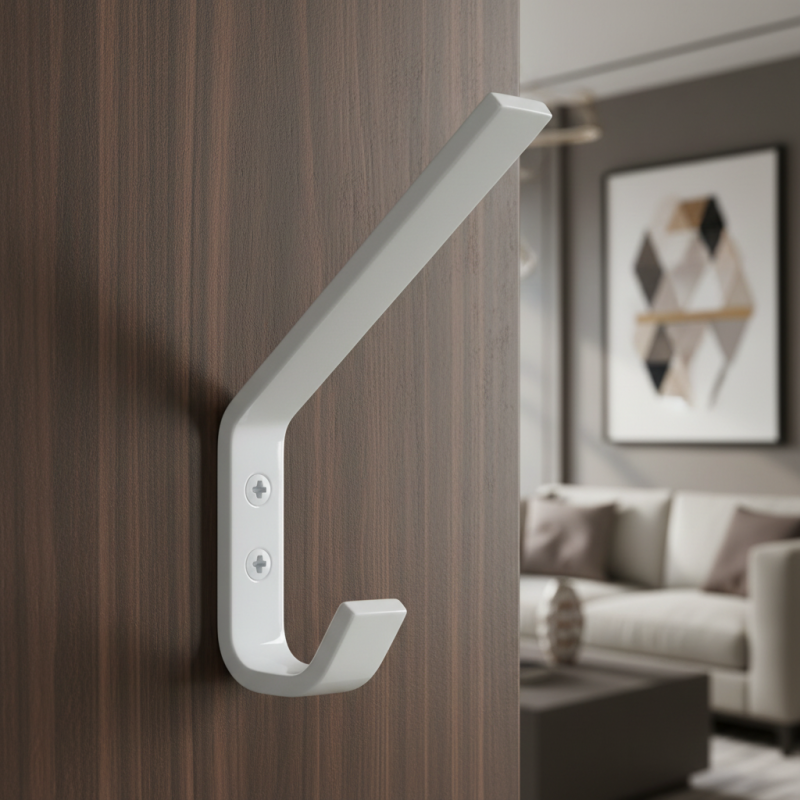Der elegante und moderne Kleiderhaken VILACH in glänzendem Weiß ist eine großartige Wahl für alle Einrichtungsstile – von minimalistisch bis klassisch. Die glänzende Oberfläche verleiht dem Raum Reinheit und dezente Eleganz, während die schmale und kantige Form modern und zeitlos wirkt.