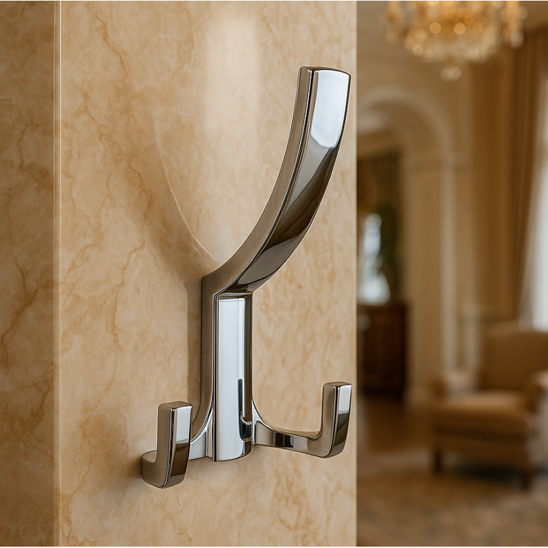 Drei-Haken-Design - zwei kleinere Haken unten für Taschen, Accessoires oder Handtücher und ein großer Haken oben für Mäntel oder schwerere Gegenstände.