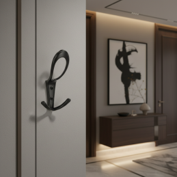 Der Haken ist für die Frontmontage an Wand oder Möbeln bestimmt. Im Lieferumfang sind Montageschrauben in der Farbe des Hakens enthalten, die das Gesamtbild nicht stören und ein sauberes, ästhetisches Ergebnis gewährleisten. Die hochwertige Metallverarbeitung garantiert Festigkeit, Stabilität und eine lange Lebensdauer auch bei täglichem Gebrauch.