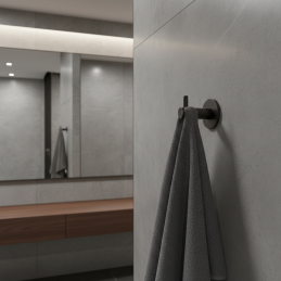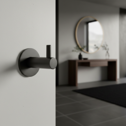 Der Haken MAGDA in dunkler Anthrazit-Ausführung ist die ideale Wahl für Kunden, die einen unauffälligen, aber designstarken Haken mit Fokus auf Qualität und modernes Aussehen suchen.