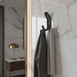 Metall-Design-Garderobenhaken in modernem Design, geeignet für Flure, Korridore, Badezimmer und Kleiderschränke. Dank der robusten Metallausführung ist er langlebig und für den täglichen Gebrauch bestimmt. Der doppelte Haken ermöglicht das praktische Aufhängen von Kleidung, Taschen oder Accessoires.