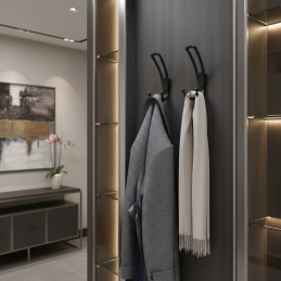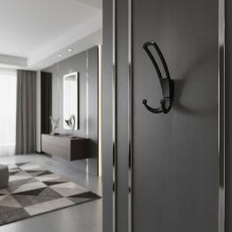 Der Haken LAMAR XL in schwarzer matter Farbe ist die ideale Wahl für alle, die eine Kombination aus modernem Design, hoher Funktionalität und Widerstandsfähigkeit suchen.