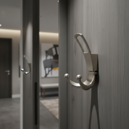 Der Kleiderhaken LAMAR in gebürsteter Nickel-Ausführung ist die ideale Wahl für alle, die einen funktionalen, eleganten und widerstandsfähigen Kleiderhaken für moderne Innenräume suchen.