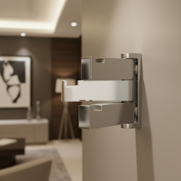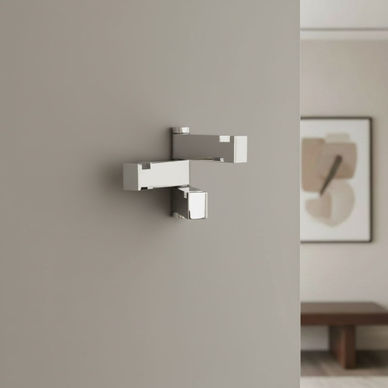 Design-Drehhaken mit drei Armen, die einzeln drehbar sind und so eine praktische und flexible Nutzung im Flur, Bad oder Kleiderschrank ermöglichen. Die Montage erfolgt von vorne an der Wand mit Schrauben.