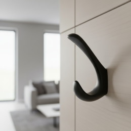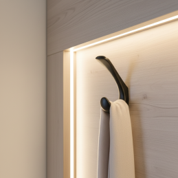 Eleganter und moderner Kleiderhaken MANAL in der Oberfläche schwarz matt ist ein Designelement, das dem Raum Stil und Funktionalität verleiht.
