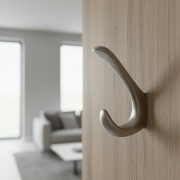 Der Haken ist für die Frontmontage auf einer Unterlage konzipiert, was außergewöhnliche Stabilität und zuverlässige Befestigung garantiert.
