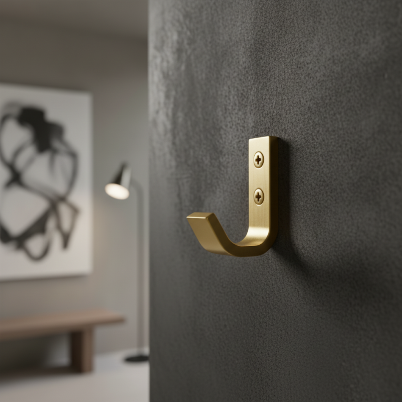 Der elegante und minimalistische Kleiderhaken VILACH Mini in luxuriösem gebürstetem Gold ist eine großartige Wahl für moderne sowie klassische Innenräume. Dank seiner geringen Größe ist er ideal für Badezimmer, Flure, Küchen oder Büros, wo er eine praktische Aufhängemöglichkeit für Handtücher, Taschen oder Kleidung bietet.