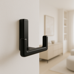 Der Haken ist mit zwei stabilen Haken ausgestattet, die das gleichzeitige Aufhängen mehrerer Gegenstände ermöglichen – Mäntel, Jacken, Handtaschen, Schlüssel oder Handtücher.