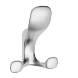 Der Haken ist mit einem doppelten Haken ausgestattet, der ein bequemes Aufhängen von Mänteln, Jacken, Handtaschen oder Accessoires ermöglicht. Er ist für die Frontmontage auf einer Unterlage (Wand oder Möbel) vorgesehen, wobei die Befestigungsschrauben von vorne zugänglich sind und eine einfache Installation gewährleisten.