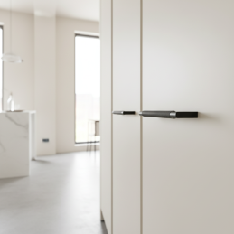 Moderner Griff, der an der Kante der Tür befestigt werden kann und so den Effekt eines Einbaugriffs vermittelt