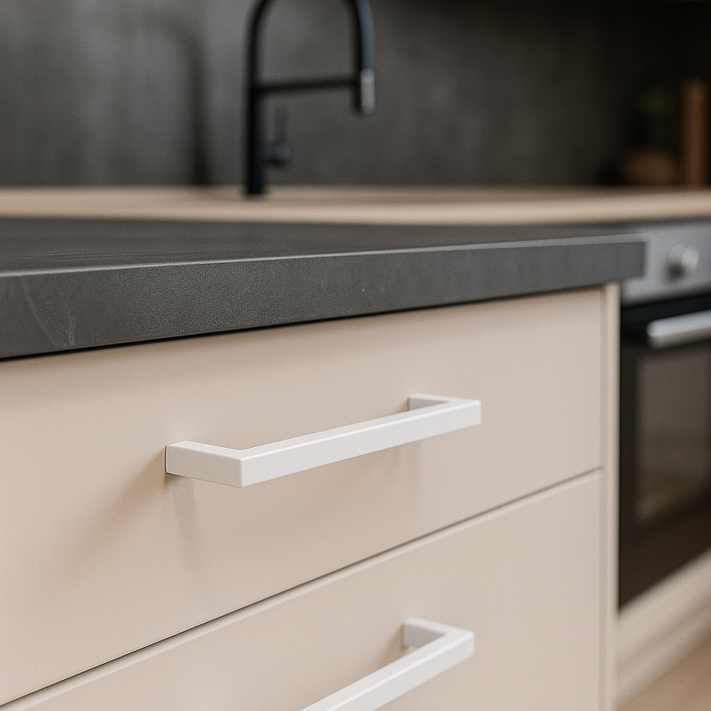 Der PISA-Griff bietet ein einfaches, klares und zeitloses Aussehen, das in jedes moderne oder klassische Haus passt. Die minimalistische, kantige Form unterstreicht die Eleganz eines Küchenschranks, einer Kommode, eines Schranks oder eines Büromöbels.