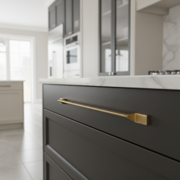 Der Griff VENITA in matter Goldausführung unterstreicht den eleganten Charakter Ihrer Möbel. Er ist designstark, modern und wirkt hochwertig – ideal für Küchen, Wohnwände, Kleiderschränke oder Design-Kommoden.