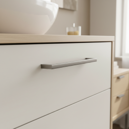 Ein stilvoller Griff in modernem, minimalistischem Design, der Ihren Möbeln ein elegantes und luxuriöses Aussehen verleiht. Dank seiner schlanken Linie und der hochwertigen Stahlverarbeitung eignet er sich für moderne Innenräume, Küchen oder Büros.