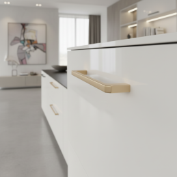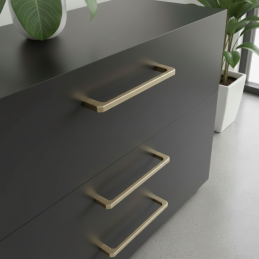 Der Design-Griff ist die ideale Wahl für moderne und rustikale Innenräume. Dank seiner zeitlosen Form und der hochwertigen Verarbeitung verleiht er jedem Möbelstück ein luxuriöses und elegantes Aussehen.