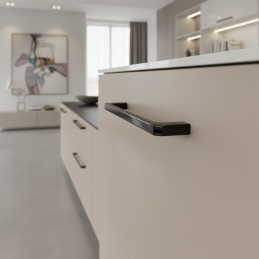 Der Design-Griff ist die ideale Wahl für moderne und rustikale Innenräume. Dank seiner zeitlosen Form und der hochwertigen Verarbeitung verleiht er jedem Möbelstück ein luxuriöses und elegantes Aussehen.