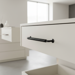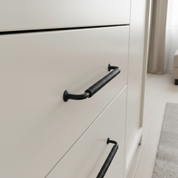 Der STIGMA-Griff in schwarzer, matter Ausführung ist die ideale Wahl für Kunden, die ein hochwertiges, designstarkes und funktionales Detail für moderne Möbel suchen.