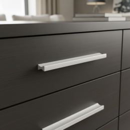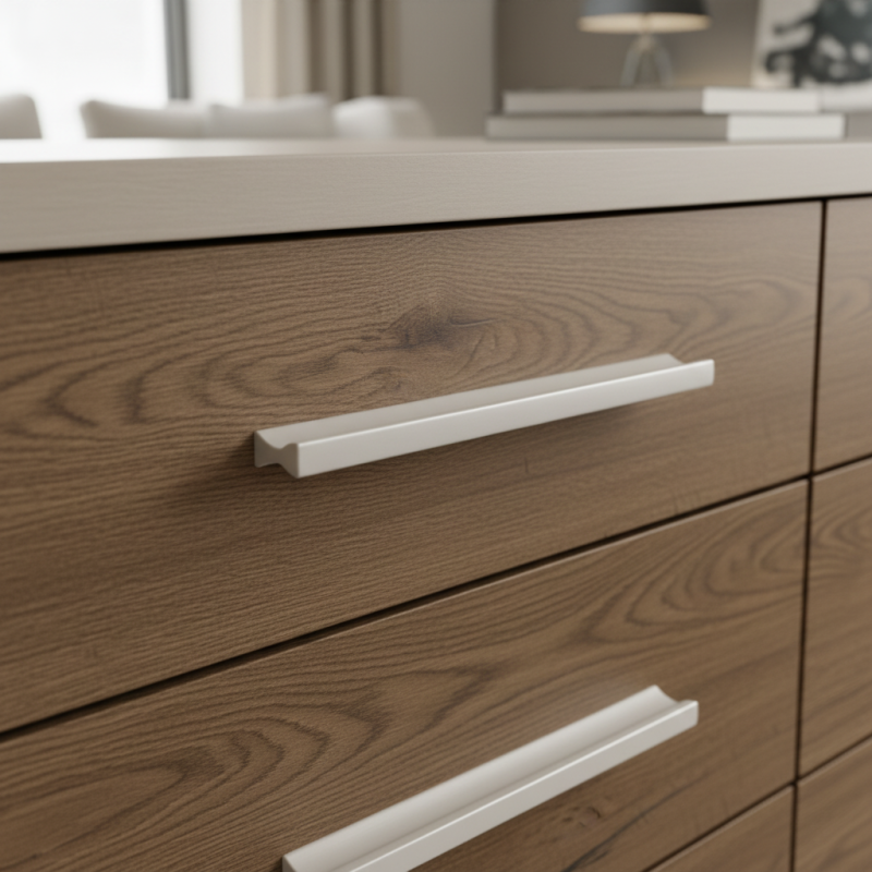 Der Griff PIREA in der Ausführung weiß matt bringt Reinheit, Minimalismus und zeitlose Eleganz in jedes Interieur. Sein schlankes, modernes Profil wirkt sehr dezent, bietet aber gleichzeitig einen komfortablen Griff. Die matte weiße Farbe ist universell und passt perfekt zu modernen sowie klassischen Oberflächen.