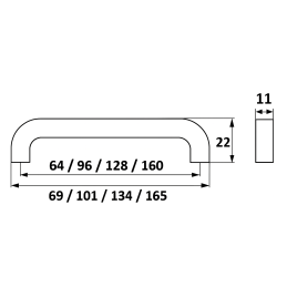 Bohrabstand 64 mm / Gesamtlänge 69 mm