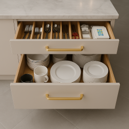 Der Griff besteht aus hochwertigem Material mit einer widerstandsfähigen Oberflächenbehandlung, die kratzfest, feuchtigkeitsbeständig und gegen normale Abnutzung geschützt ist. Durch seine angenehme Form bietet er einen komfortablen Griff und erleichtert das Öffnen von Schubladen oder Türen.