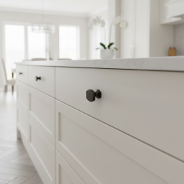 Der Knopf AMADORA in schwarzer matter Ausführung ist ein modernes und markantes Designelement, das die großen Griffe AMADORA perfekt ergänzt. Zusammen bilden sie eine einheitliche, elegante und minimalistische Linie, die sich für moderne Küchen, Bäder, Kleiderschränke und Wohnräume eignet.