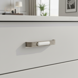 Der Keramikgriff FARO in schwarzer, matter Ausführung ist ein modernes, markantes und zugleich elegantes Accessoire, das Möbeln einen raffinierten Kontrast verleiht. Die Kombination aus mattschwarzem Metall aus Zinklegierung und weißem Porzellan mit feinem Reliefmuster schafft ein harmonisches und zugleich sehr attraktives Designelement.