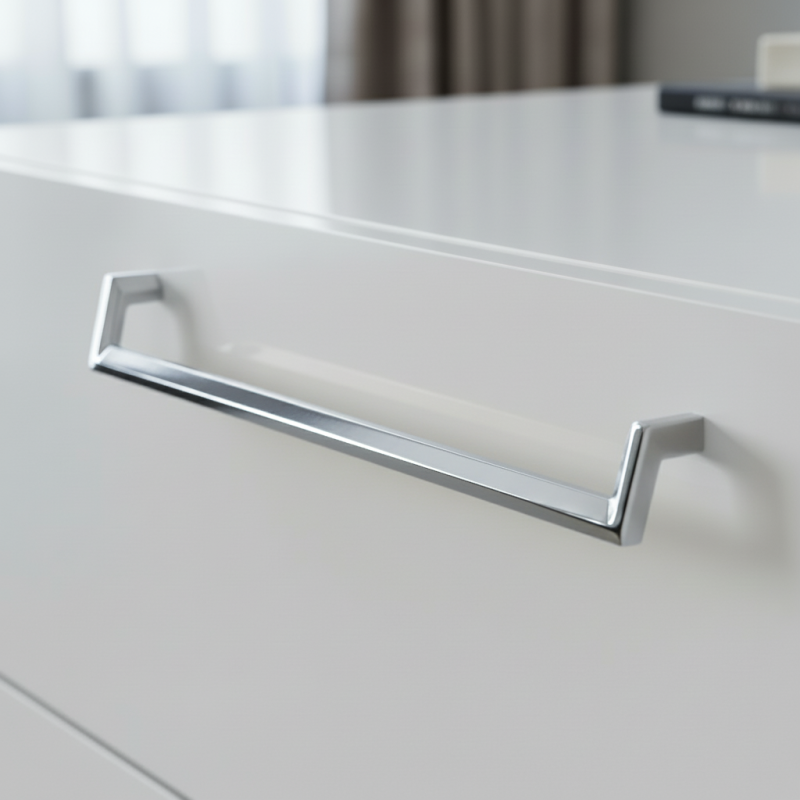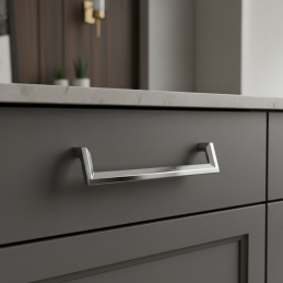Der Griff AMORA in glänzendem Chrom ist ein modernes und elegantes Accessoire, das Möbeln ein sauberes, luxuriöses und professionelles Aussehen verleiht. Seine geometrisch geformten Linien mit sanfter Biegung wirken designorientiert und zeitlos, wodurch er ideal für moderne Küchen, Bäder, Garderoben, Büros oder Wohnräume ist.