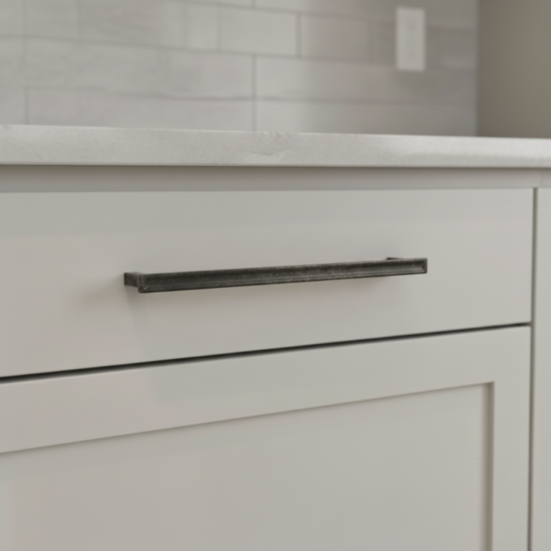 Der Griff SINTRA in Alt-Schwarz ist die ideale Wahl für alle, die ihren Möbeln ein stilvolles, dezent patiniertes und besonders charakteristisches Element verleihen möchten.