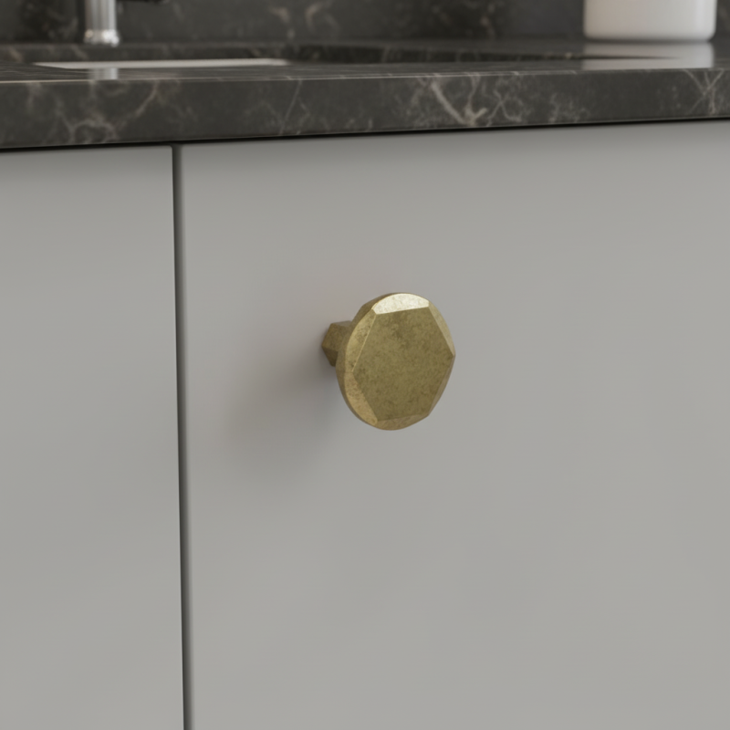 Der LAMEGO-Knopf in altmessingfarbener Ausführung ist ein elegantes und stilvolles Detail, das die großen LAMEGO-Griffe im gleichen Design perfekt ergänzt. Seine sanft facettierte Form wirkt luxuriös und zugleich zeitlos, wodurch er sowohl in klassische, Vintage- als auch moderne Interieurs passt.