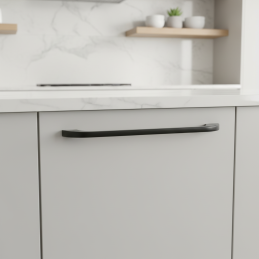 Der Griff DARA in schwarzer matter Farbe ist die ideale Wahl für alle, die ein modernes, klares und zeitloses Designdetail suchen, das jedes Interieur elegant ergänzt.