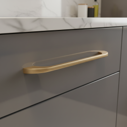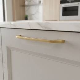 Der Griff DARA in gebürstetem Gold ist die ideale Wahl für alle, die ihren Möbeln ein elegantes, modernes und dezent luxuriöses Detail ohne übertriebene Pracht verleihen möchten.