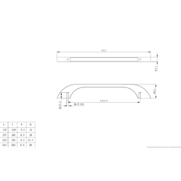 • Bohrungsabstand 320 mm – Gesamtlänge ca. 363 mm, Höhe 29 mm