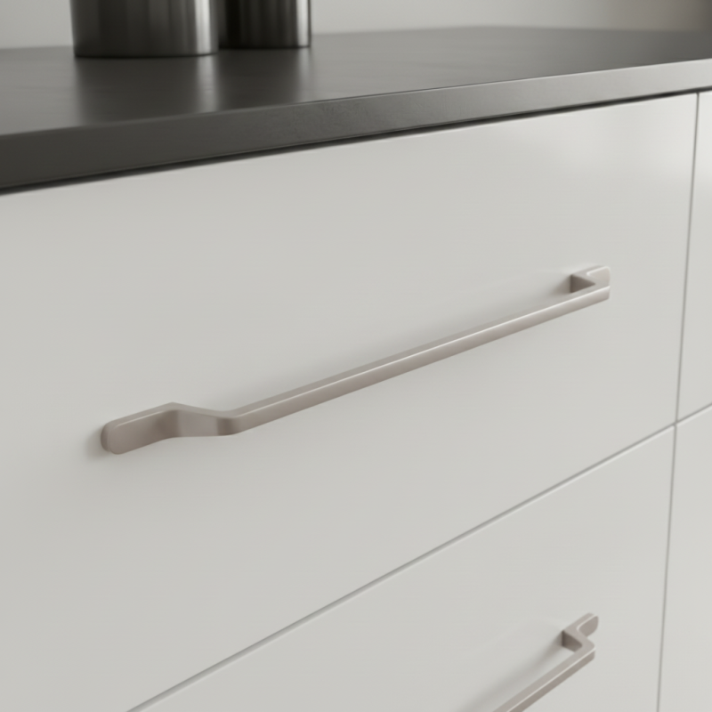 Der Griff ELIDA in Edelstahloptik ist ein zeitloses und universelles Accessoire, das durch sein klares Design und funktionale Eleganz besticht. Seine lange, schlanke Form mit sanfter Abwinkelung an den Enden wirkt modern und zugleich sehr leicht, wodurch er sich hervorragend für moderne, minimalistische und technisch orientierte Innenräume eignet.