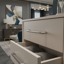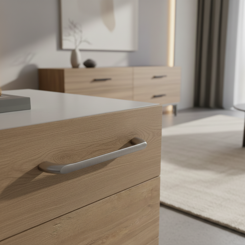 Dank seines universellen Designs eignet sich der Griff für Küchen, Bäder, Wohnzimmer, Garderoben sowie Büromöbel. Er kommt sowohl auf hellen als auch auf dunklen Oberflächen, Holz, Laminat und lackierten Türen hervorragend zur Geltung.
