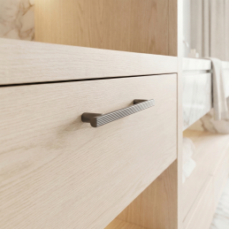 Moderne Möbelgriff LIZA in eleganter Graphit-Ausführung ist ein stilvolles Accessoire für Küchenzeilen, Schränke, Kommoden oder Kleiderschränke. Das minimalistische Design mit feiner Riffelung an der Vorderseite verleiht dem Griff ein modernes Aussehen und sorgt gleichzeitig für einen bequemen und festen Halt.