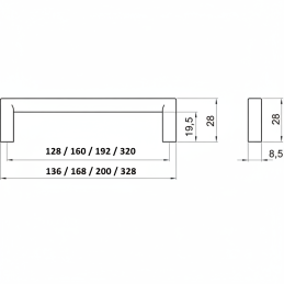 Schraubenabstand (CC): 128 / 160 / 192 / 320 mm