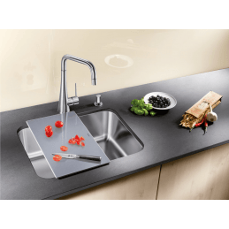 Blanco Supra 450-U ist die ideale Lösung für moderne Küchen, in denen klares Design und Praktikabilität dominieren. Dieses Edelstahlspülbecken mit den Gesamtmaßen 480 × 430 mm ist für Unterschränke mit einer Breite ab 50 cm vorgesehen.