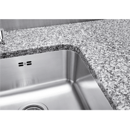 Da das Modell keine Armaturenbank hat, wird die Armatur direkt in die Arbeitsplatte eingebaut, was eine flexible Lösung nach Ihren Bedürfnissen ermöglicht und gleichzeitig das klare Design der Spüle bewahrt.